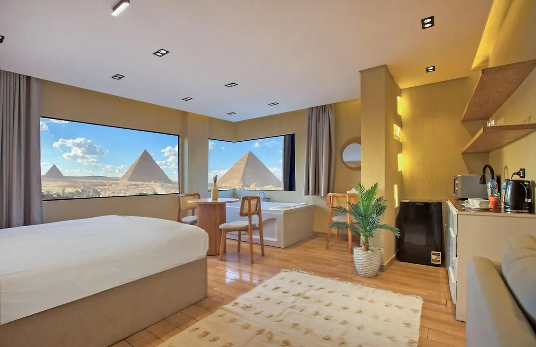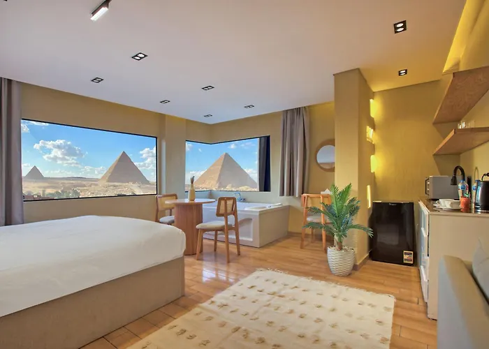 El centro de Kafret el-Gabal se encuentra a 10 minutos a pie de este hotel de 4 estrellas, mientras que atractivos culturales como el Musée de la Barque Solaire están a 10 minutos en coche. El hotel Eterna Pyramids View está a 4 km del Pirámide estratificada en Kafret el-Gabal. Los huéspedes del establecimiento pueden llegar a la Esfinge, que está a unos 25 minutos a pie. Para los que viajan desde lejos, el aeropuerto El internacional del Cairo está a 30 minutos en coche.